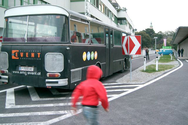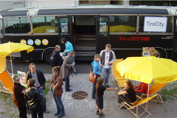 22.09.-06.11.2005 Hall i.T., Austria | ![]() The audiovisual installation at the LA05 is based on the idea of a guided tour through TirolCITY. An old bus placed on a highway section, which is part of the exhibition, provides a projection space. Visitors are invited to enter the bus equipped with a city map of TirolCITY so that they can follow the virtual stops during the TirolCITY film. | |